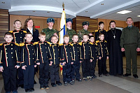 В этот день к торжественной присяге был приведен класс будущих военных дирижеров творческой школы в Лунево. Все ребята получили напутствие и церковное благословение, а также памятные подарки.