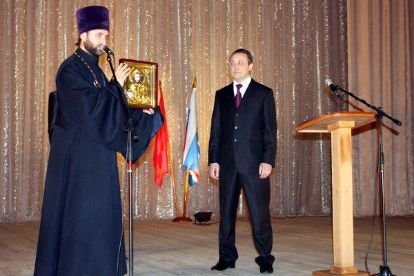 На торжество были приглашены и священнослужители Озерского района: благочинный церквей Озерского района иерей Геннадий Бырлэдяну, настоятель Успенской церкви села Белые Колодези иерей Дмитрий Князев, помощник благочинного протоиерей Павел Бырлэдяну, настоятель Покровской церкви села Сосновка иерей Арсений Писаревский. С поздравительным словом выступил благочинный, настоятель Троицкой церкви г. Озеры, иерей Геннадий Бырлэдяну, пожелал помощи Божией в нелегких трудах по управлению районом в трудный для страны период времени и преподнес в дар образ Спасителя.