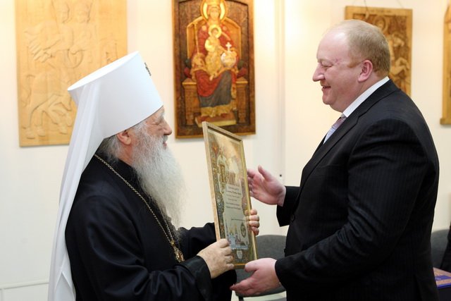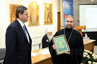 Владыка вручил благодарственную грамоту министру здравоохранения Правительства Московской области В. Ю. Семенову, благословенные грамоты: начальнику Дмитровского районнного управления здравоохранения В. М. Мишарину, главному врачу Центральной городской больницы г. Реутова К. Ю. Лакунину, главному врачу Видновской районной больницы В. Г. Соколенко и заведующему онкологического отделения Коломенской центральной районной больницы А. Г. Зафирову, а также наградил заместителя главы Дмитровского района Е. А. Виноградову благодарственной грамотой за плодотворное сотрудничество с Московской епархией.