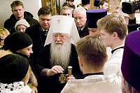 Затем Владыка митрополит зачитал послание Святейшего Патриарха Кирилла в связи с трагической кончиной протоиерея Александра Филиппова