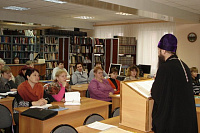 24 декабря в районной центральной библиотеке имени И. И. Лажечникова прошел семинар библиотекарей Коломенского района. Главной темой семинара стали вопросы духовно-нравственного воспитания. Встречу открыл благочинный церквей Коломенского округа протоиерей Владимир Пахачев, который отметил, что корнем проблем общества является нравственная причина. Решение вопросов нравственности осуществляется через общее объединение усилий, прежде всего работников культуры, образования и духовенства. Сельские библиотекари на своих местах могут многое сделать, раскрывая в произведениях русских классиков образ высокой нравственности и культуры. В конце выступления был продемонстрирован мультипликационный фильм «Ангел в твоей душе», созданный по произведению Н. С. Лескова воскресной школой храма Пресвятой Троицы на Репне. Далее искусствовед О. Н. Крюкова прочитала лекцию «Коломенские иконы в Третьяковской галерее». В рамках обсуждения темы «Значение православной литературы в процессе нравственного возрождения общества» поделилась опытом заведующая отделом С. А. Григорьева. Ведущий методист Н. В. Безрукова в свою очередь дала обзор православной литературы для детей. Завершилась работа семинара совместным чаепитием, на котором участники смогли поделиться своими впечатлениями о проведенной встрече.