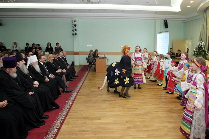 В актовом зале гимназии гостям был предложен концерт, подготовленный школьниками, изучающими «Основы Православной культуры». Ребята — от самых маленьких до старшеклассников — пели, танцевали, играли на музыкальных инструментах с таким задором и мастерством, что зрители провожали дружными аплодисментами каждого выступающего. Понравились и запомнились гостям хор мальчиков под управлением Артема Косенкова, исполнивший «Богородице, Дево, радуйся» и «Молитву о духовном отце»; народные песни в исполнении школьниц младших классов Наташи Антоновой и Алины Ровник; «Грустная песенка»