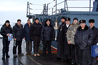 В 9 утра 24 января на подшефном корабле состоялось торжественное построение экипажа, поднятие гвардейского флага, флагов расцвечивания и гвардейская присяга, которую принимали и призывники Ленинского района. Священник Димитрий принимал участие в раздаче гвардейских ленточек и значков.