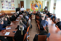 27 апреля в актовом зале собора Святой Троицы г. Щелково прошло ежемесячное собрание духовенства Щелковского благочиния, на котором были обсуждены организационные вопросы и состоялся пастырский семинар, где была прочитана лекция на тему «О душевных заболеваниях, их признаках и правильном обращении с душевнобольными». Докладчик —