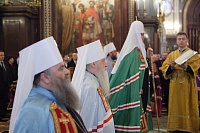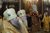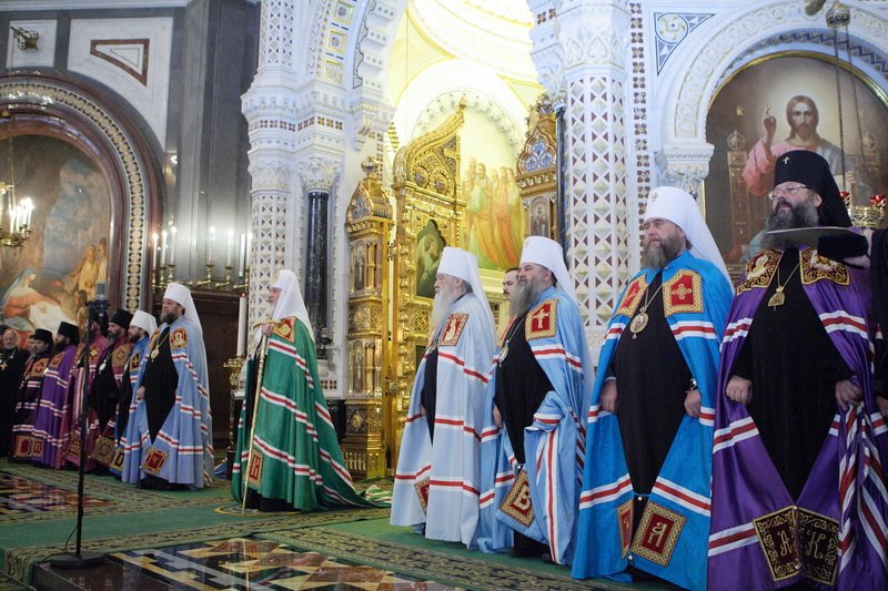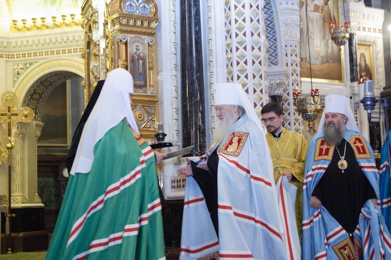 Его Святейшеству сослужили: митрополит Крутицкий и Коломенский Ювеналий; митрополит Кишиневский и всея Молдовы Владимир; управляющий делами Московской Патриархии митрополит Саранский и Мордовский Варсонофий; председатель Отдела внешних церковных связей митрополит Волоколамский Иларион; митрополит Астанайский и Казахстанский Александр; архиепископ