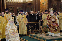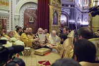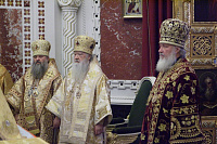 За Божественной литургией Предстоятель Русской Православной Церкви и сослужившие Его Святейшеству архиереи совершили хиротонию архимандрита Никодима (Вулпе) во епископа Единецкого и Бричанского.