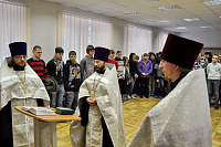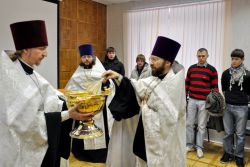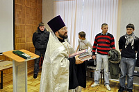 Священнослужители соборно отслужили молебен на начинание всякого благого дела, по окончанию которого сердца детей потеплели, было заметен возрастающий интерес детей и желание продолжить общение. Иереем Андреем Пироговым была подарена духовная литература. Каждому ребенку вручили подарок и памятную икону Рождества Христова.