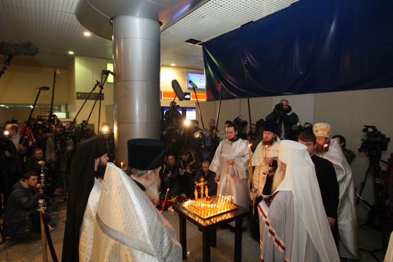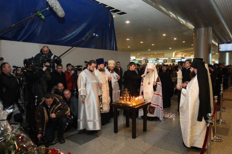 Зазвучали слова заупокойных песнопений, и стал тише обычный для огромного аэровокзала шум. В молитву об упокоении новопреставленных рабов Божиих, на месте сем погибших, вслушивались не только те, кто прибыл помянуть погибших, но и все, кто был в этот час в здании аэропорта. Беда никого не оставила равнодушным: люди разных национальностей и религиозных традиций подходили к месту взрыва, возжигали свечи, приносили цветы.