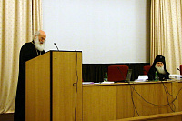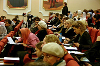 В первой части секции обсуждались проблемы нормативного и методического обеспечения, а также возможности лицензирования деятельности воскресных школ. Вниманию слушателей были представлены доклады представителей Екатеринбургской,