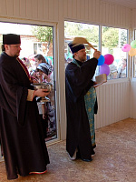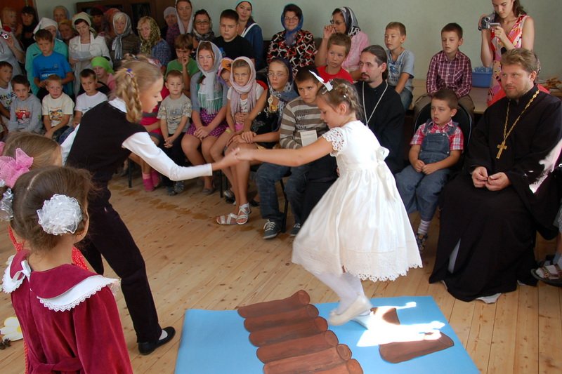 Торжества престольного праздника продолжились в новом школьном здании. Отец благочинный окропил святой водой новые помещения, а дети и учителя приходской школы представили спектакль, а так же поучительную сценку о вере и молитве в жизни человека. В завершении для маленьких артистов и зрителей силами родителей и учителей была приготовлена программа подвижных игр и конкурсов, а затем вкусная трапеза.