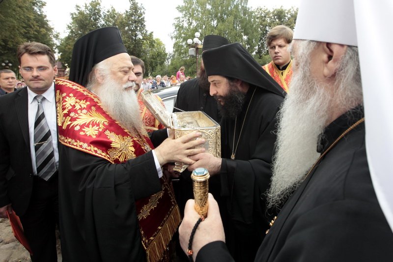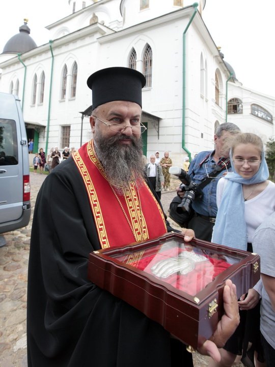 Мы приехали сюда из Греции, из апостольской Церкви Верии, по причине почтенного приглашения местной Церкви и местной администрации, привозя к Вашей драгоценности не материальные сокровища и земные дары, но часть облагодатствованных святых мощей мироточивого великомученика Димитрия, общего нашего покровителя, чтобы на несколько дней и ваш город стал жилищем возлюбленного всеми нами святого.