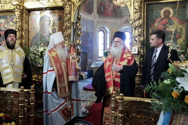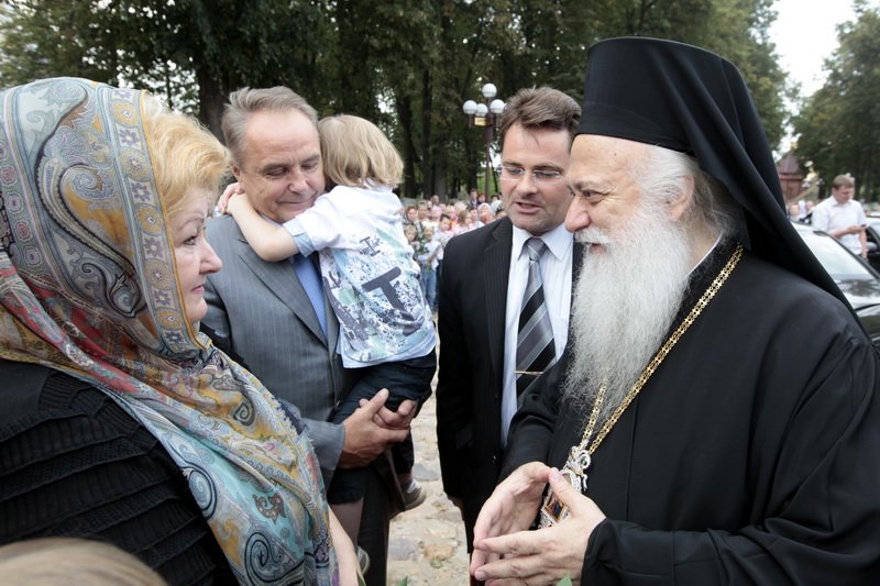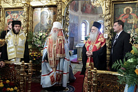 Благодарю вас, из глубины сердца, за почтительное приглашение и теплый прием. Мы прославляем великомученика святого Димитрия, который явился причиной духовного нашего общения, общения между братьями, которых объединяет общая вера во Христа и общая любовь и почтение к святому мученику Господа, к прославленному святому Димитрию. Но также нас объединяет и общая молитва, прославляющая всещедрого Бога, от которого проистекает неограниченная милость через предстательство святого великомученика Димитрия, и мы желаем, чтобы она наполняла нашу жизнь и наши дела».