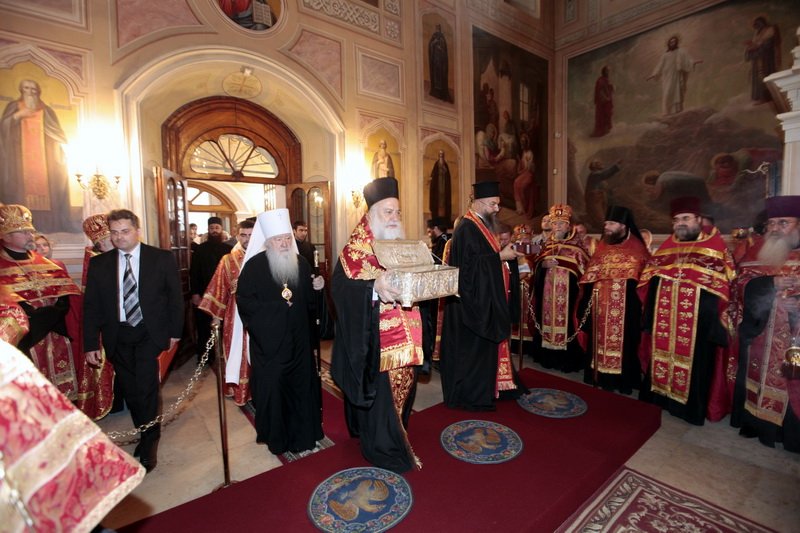 «Приветствующий вас Меня принимает и принимающий Меня принимает пославшего Меня» (Мк. 9:37). Этим неложным словом Господа мы умом и сердцем переживаем ваш дружелюбный прием, имея абсолютное чувство, что тот почет, который мы переживаем, не относится к нашему смирению, а имеет отношение к всеизвестному имени, к победоносцу и мученику Господа, прославленному во Христе воину, к великомученику и подвижнику Димитрию, мощи которого мы привозим сегодня в ваш город.