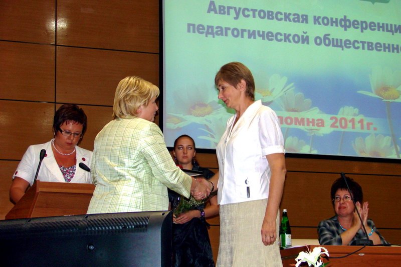 С особым вниманием слушали участники конференции выступление министра образования Правительства Московской области Л. Н. Антоновой. Она тепло отозвалась о Коломне, в которой ей всегда очень приятно бывать, похвалила работу городской администрации и работников образования, рассказала о существующих проблемах в сфере образования и о стратегиях, разрабатываемых сейчас Министерством образования, которые призваны их разрешить. В завершение своего выступления Лидия Николаевна вручила награды губернатора Московской области Б. В. Громова лучшим коломенским педагогам.