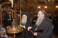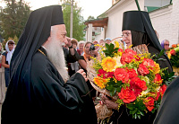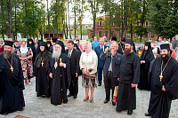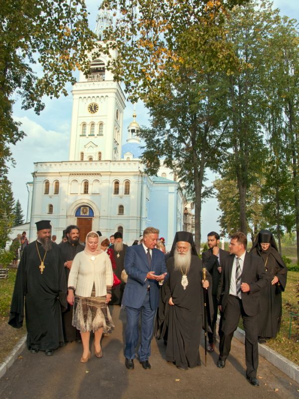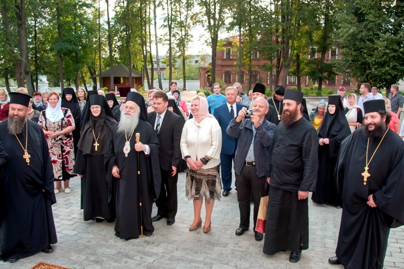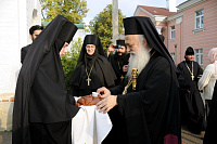 С. Н. Тягачева и игумения Александра рассказали гостям историю возникновения, разорения и возрождения святой обители. Затем гости осмотрели собор во имя Спаса Нерукотворного. Митрополит Элладской Православной Церкви Пантелеймон отметил, что монастырский собор похож на кафедральный своим благолепием. В храме вмч. Димитрия Солунского гости приложились к мощам прписп. Параскевы (Матиешиной). Гости поклонились могилкам схимонахинь Марии и Серафимы, особо почитаемым в Деденеве.
