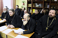 28 декабря в Красногорске прошло 89-е окружное собрание духовенства, которое началось соборным служением Божественной литургии. Затем в трапезной прошли обсуждение текущих организационных вопросов и пастырский семинар. С докладом на тему «Диалог православия и католичества» выступил клирик Знаменского храма г. Красногорска священник Артемий Панасюк.