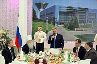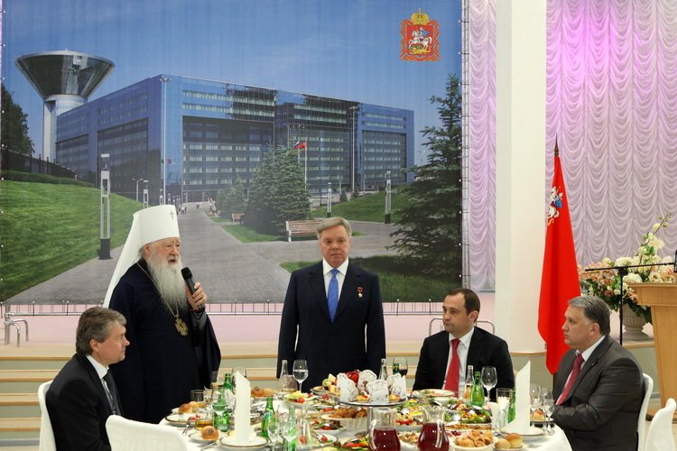 26 апреля в Доме правительства Московской области в приеме, устроенном губернатором Московской области Б.В. Громовым, принял участие Управляющий Московской епархией митрополит Крутицкий и Коломенский Ювеналий. Обращаясь к губернатору Московской области Герою Советского Союза Б.В. Громову Владыка митрополит сказал: «Дорогой Борис Всеволодович, уважаемые участники приема! Христос Воскресе! Дорогой Борис Всеволодович! Вы упомянули об этапах своей жизни. Мы – живые свидетели Вашего подмосковного этапа. Все предыдущие этапы были героическими, и Вы по праву именуетесь Героем Советского Союза. Мы уверены, что и следующий этап Вашей жизни будет также героическим для нашей любимой России. Мне хочется сейчас сказать о том, о чем не пишут газеты, о чем Вы никогда не говорите публично, потому что это – в тайниках сердца каждого, и, в первую очередь, Вашего сердца. Но я обязан свидетельствовать перед всеми, что в Московской области в течение многолетней, многовековой истории, не было такого периода духовного и церковного созидания, которым был Ваш период. Кругом - как после бомбежки. Я не говорю о светской жизни, о дорогах, и прочем, я хочу сказать о церковной жизни. Сотни и сотни разрушенных храмов, новые города, где никогда не было храма. И за этот период, я бы сказал, героический период, 1500 храмов, некоторые из руин восстановлены, а другие заново построены. Но не это самое главное. Я помню, как Вы шуткой ответили журналисту, когда он поинтересовался, сомневаясь, правда ли, что Вы кирпич покупали при строительстве одного из храмов Подмосковья. А Вы также, шутя, в своем стиле ему сказали: «Правда, но не один, а два». И вот никогда, Борис Всеволодович, Вы не говорили о своих заслугах, подобно тому, как в Евангелии сказано, что каждый, кто делает добро, должен говорить, что он сделал то, что должен был сделать (Лк. 17:10). Я думаю, что Ваш героический образ и Ваша жизнь и нас будут вдохновлять, учить выдержке, мужеству, и беззаветному служению нашему Отечеству. Святейший Патриарх Кирилл поручил мне в этой торжественной обстановке передать Вам высший орден Русской Православной Церкви «Славы и чести» I степени. Позвольте мне исполнить благословение Святейшего Патриарха и передать его горячие молитвенные благопожелания Вам в жизни и трудах».