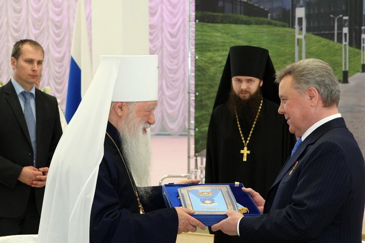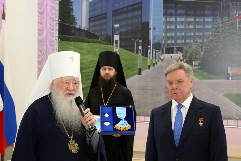 Владыка митрополит вручил Б.В. Громову высший орден Русской Православной Церкви – «Славы и чести» I степени на ленте, которого Борис Всеволодович удостоен Святейшим Патриархом Кириллом за выдающийся вклад в дело духовно-нравственного возрождения Подмосковного региона.