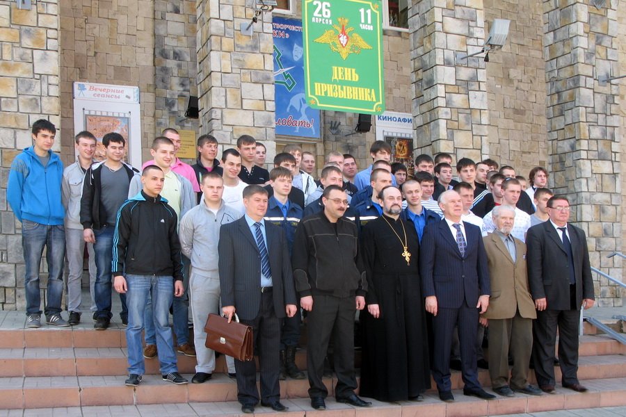 26 апреля в Волоколамске был отмечен День призывника в ряды Вооружённых Сил Российской Федерации. Торжественная часть праздника состоялась в Волоколамском центре культуры и творчества «Родники». На торжественном мероприятии присутствовали: глава Волоколамского муниципального района Вячеслав Карабанов, представители городского поселения Волоколамск, сельских поселений района, начальник отдела военного комиссариата Московской области по г. Волоколамску, Волоколамскому, Лотошинскому и Шаховскому районам Андрей Багдасаров, настоятель Покровского храма города Волоколамска протоиерей Николай Яковлев, ветераны, учащиеся, родители, многочисленные гости. Глава района Вячеслав Карабанов и участники праздника пожелали молодым людям успешного несения воинской службы, честного исполнения воинского долга, достойного представления уроженцев города Волоколамска в Вооружённых силах. От Волоколамского благочиния со словами напутствия будущим защитникам Отечества выступил протоиерей Николай Яковлев. Священник поздравил все присутствующих с днями Святой Пасхи и пожелал ребятам успешной службы. В заключение мероприятия призывникам вручили подарки и выдали повестки, а батюшка в благословение раздал парням крестики, иконки и молитвословы.