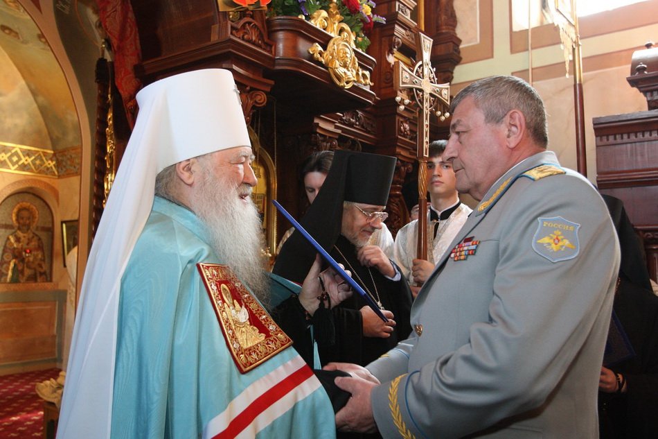 «Ваше Высокопреосвященство, дорогой Владыка! Разрешите от всех прихожан Никольского храма поприветствовать Вас на Одинцовской земле. Когда мы узнали, что Вы будете сегодня служить в нашем храме и состоится его великое освящение, радость переполнила всех, и с большим энтузиазмом мы приступили к подготовке к приезду своего архипастыря. Сегодня действительно много детей, которые пришли разделить эту великую, пасхальную радость. Они пришли со своими родителями, которые в большинстве являются военнослужащими Краснознаменского гарнизона и охраняют рубежи нашей Родины в космическом пространстве. Разрешите преподнести Вам икону благоверного князя Александра Невского, которая побывала в космосе. С праздником, дорогой Владыка!»