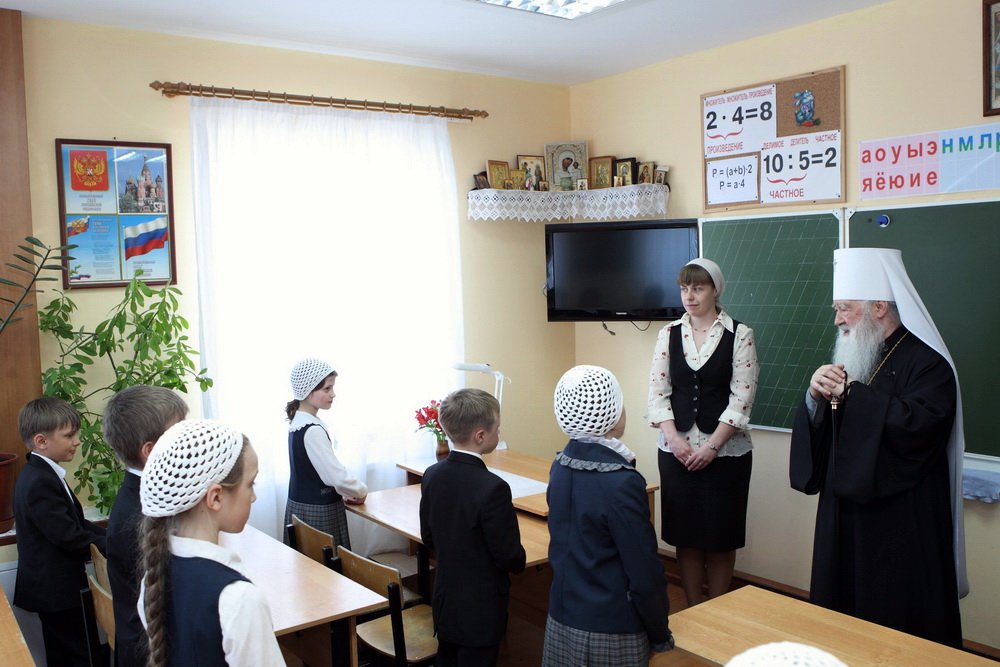 Самые серьезные трудности для школы, естественно, были связаны с помещениями. В 2010 году было построено новое здание общей площадью 600 кв.м., и сегодня гимназия располагается в двух зданиях. Площадь занимаемых помещений позволяет обучать в гимназии до 180 учащихся. В новом здании школы Владыка осмотрел классные комнаты и рабочие кабинеты сотрудников.