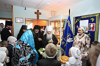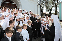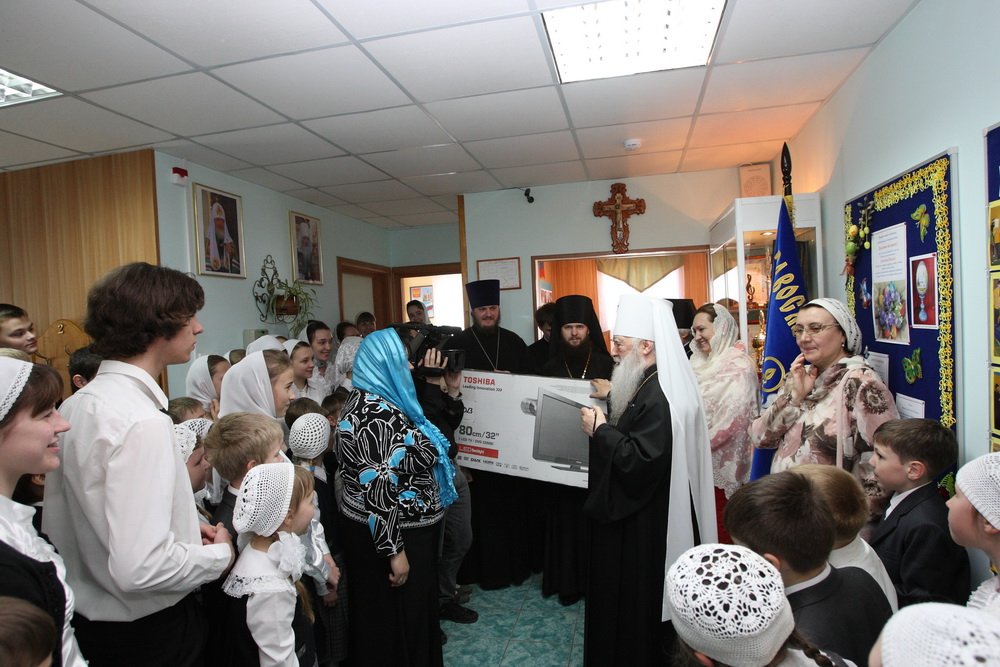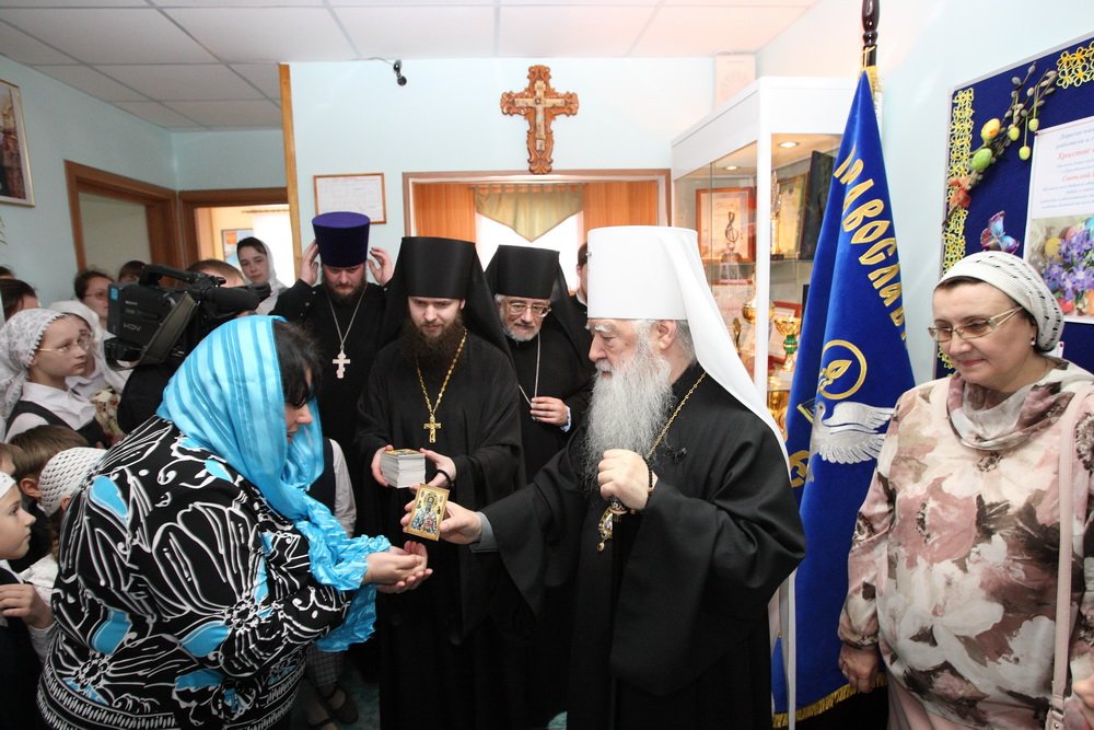 Затем Владыка митрополит вместе с высокими гостями посетил новый корпус Православной гимназии «Светоч» при Никольском храме. Она была сформирована на базе консультационного центра для детей, обучающихся на семейной форме обучения в Троицкой православной школе. В 2011 году, в связи с ростом желающих обучаться, здесь было принято решение о регистрации школы, как самостоятельного учебного заведения.