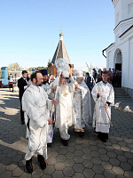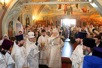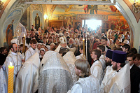 За Божественной литургией Владыке митрополиту сослужили благочинные церквей Одинцовского, Видновского и Чеховского округов, а также духовенство Одинцовского и Красногорского благочиний. Богослужение украсил молодежный хор Георгиевского собора г. Одинцово. На малом входе состоялось награждение усердных священнослужителей патриаршими и митрополичьими наградами. За богослужением молились прихожане храмов Одинцовского благочиния, воспитанники и преподаватели Православной гимназии «Светоч», а также благотворители храма и военнослужащие Краснознаменского гарнизона.