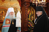 По окончании Божественной литургии архимандрит Нестор сердечно приветствовал Владыку Ювеналия: