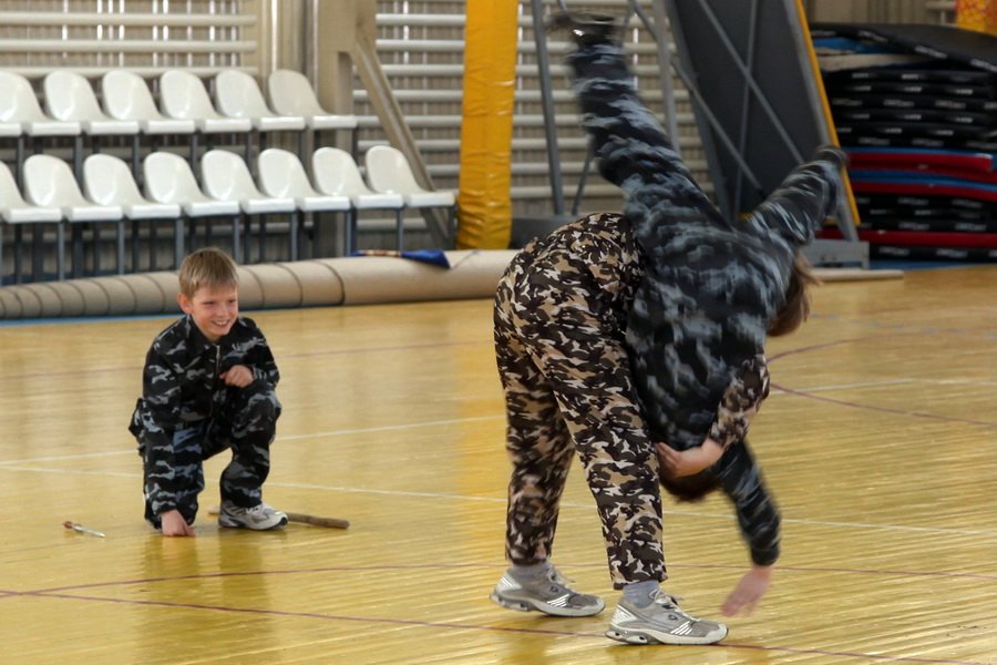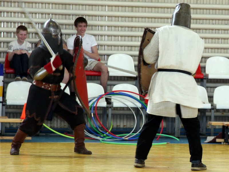 В неделю святых Жен-мироносиц в ФОКе г. Яхрома Дмитровского района прошли ставшие уже традиционными пасхальные старты с привлечением не только ребят из воскресных школ благочиния, но и из молодежных клубов при храмах. В начале соревнований молодежные клубы провели показательные выступления. Так, молодежный клуб при Сретенском храме г. Дмитрова «Дмитровские ратники» показал импровизированный бой в доспехах, сделанные в большинстве своем руками самих ребят. Молодежный клуб Троицкого собора г. Яхрома «Нестор» показал приемы рукопашного боя.