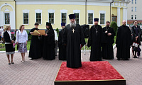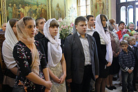 Праздник начался с Божественной литургии, за которой молились учащие, учащиеся и их родители. За богослужением пел детский хор Троицкого собора г. Подольска под управлением