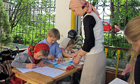 27 мая после Божественной литургии для прихожан Спасского храма г. Лобня был организован мастер-класс по древнегреческому и церковнославянскому языкам «Первые шаги». После совместного пения тропаря святым братьям-просветителям Кириллу и Мефодию, написанного на стенде церковнославянским шрифтом, для слушателей была проведена лекция-беседа о происхождении, развитии и взаимодействии древнегреческого и церковнославянского языка. Дети и взрослые с одинаковым интересом повторяли за преподавателями греческий и славянский алфавиты. Затем участники мастер-класса выбрали себе задание соразмерно уровню своих знаний и занялись самостоятельной работой, изучая и закрепляя новый материал под контролем педагогов. Было организовано три секции — «Азбука — алфавит» (пользовавшаяся особым успехом у малышей), «Слово» (для участников постарше) и «Текст-предложение». Вели мастер-класс преподаватель Н. С. Ковальчук (церковнославянский) и диакон Александр Багрин (древне- и новогреческий).