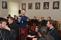 30 мая в Коломенской православной духовной семинарии состоялось второе заседание Педагогического совета Миссионерско-катехизаторских курсов Московской епархии. На педсовете присутствовали: председатель Епархиального отдела религиозного образования и катехизации, заведующий курсами иеромонах Константин (Островский), секретари четырёх Епархиальных отделов: миссионерского, по работе с молодёжью, по благотворительности и социальному служению, религиозного образования и катехизации, ответственные за работу курсов и их помощники, преподаватели курсов — всего 38 человек.