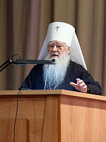 В город Красногорск съехались благочинные церковных округов Московской епархии, члены Епархиального отдела религиозного образования и катехизации, руководители муниципальных отделов образования Московской области, ректоры подмосковных ВУЗов и средних специальных учебных заведений, представители педагогической общественности.