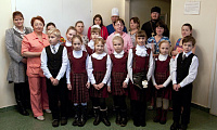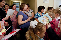 Акция передачи работ ребят начиналась с молебна Божией Матери, который прошел в Пантелеимоновском храме города Дмитрова на территории городской больницы. Молебен совершил священник Димитрий Скидаленко, и в нём приняли участие ученики православных классов Дмитровской школы № 5. Затем все отправились в роддом, где в холле ребята вначале приветствовали будущих мам и подарили всем женщинам — как пациенткам роддома, так и персоналу — свои творческие работы.