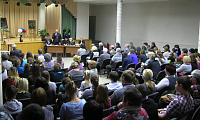 Затем конференция была продолжена в актовом зале Серебряно-Прудской средней общеобразовательной школы имени В. И. Чуйкова, участниками которой стали представители администрации Серебряно-Прудского района, профессура Московского государственного педагогического университета, духовенство, педагоги, краеведы, школьники, пресса и многие другие. С тематическими докладами выступили заместитель начальника отдела Государственного архива Российской Федерации И. С. Тихонов, военный историк, член историко-патриотического объединения «Багратион» И. З. Ершов, доктор исторических наук, профессор кафедры истории МГПУ В. А. Волков, хранитель церковно-археологического кабинета Московской духовной академии Е. Ю. Суворова и другие. От Серебряно-Прудского благочиния с докладом на тему «Русская Православная Церковь в Отечественной войне 1812 года» выступил помощник благочинного Серебряно-Прудского округа священник Максим Шамков.