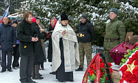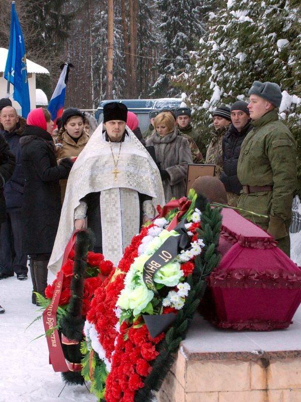 Благочинный церквей Пушкинского округа протоиерей Иоанн Монаршек (мл.) совершил панихиду, затем состоялся траурный митинг и под военный салют состоялось захоронение героя.