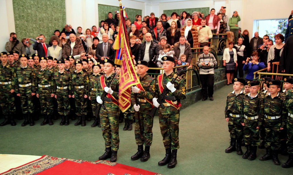 После богослужения праздник продолжился во дворце торжеств «Центральный»., в котором собрались около 70 кадетов и более 150 человек родителей и гостей. Присутствовали представители местной администрации, офицеры Серпуховского военного института ракетных войск стратегического назначения и отряда специального назначения «Рысь», представители УВД Серпухова и Института инженерной физики и другие.
