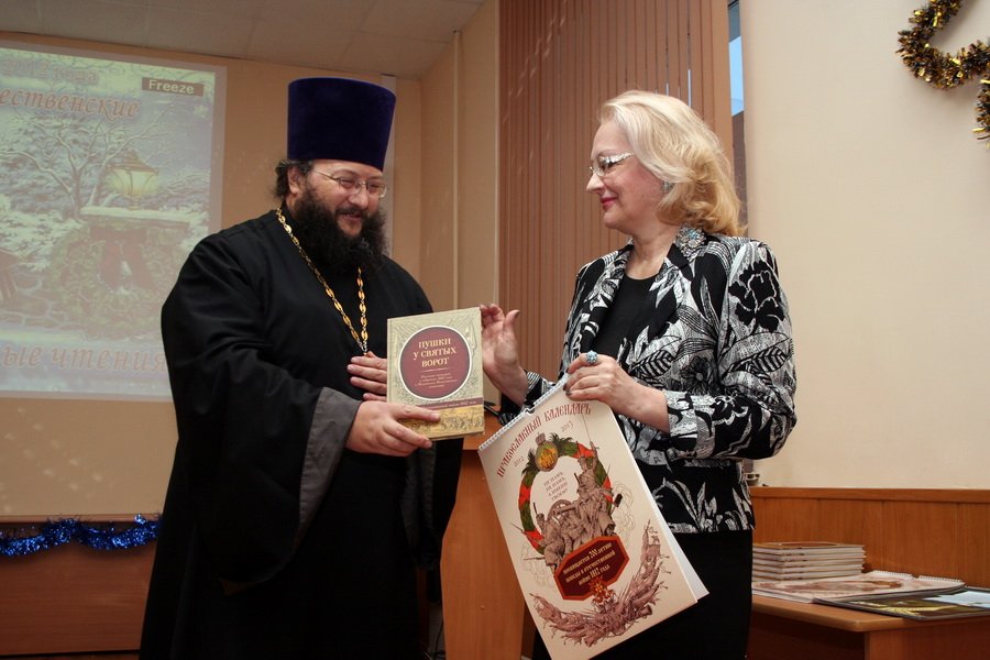 В завершение Рождественских чтений протоиерей Владислав Бобиков передал сотрудникам управления народного образования и преподавателям учебных заведений города благодарственные грамоты и подарки от Дубненско-Талдомского благочиния.
