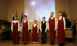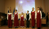 Вечер открыл фольклорный ансамбль хоровой школы-студии «Подснежник», (руководитель Татьяна Волкова). Участники ансамбля в нарядных народных костюмах задорно и весело исполнили русские песни. Затем Софья Мелина, ученица Детской школы искусств «Рапсодия» (преподаватель Мария Волощенко) прочитала стихотворение Саши Черного «Рождественское». Ансамбль «Надежда» этой же школы, которым руководит Вера Семенова, порадовал зрителей исполнением рождественских песен. После выступления творческих коллективов к собравшимся обратились Т. К. Виноградова, заместитель главы администрации города Дубны, начальник управления народного образования и благочинный церквей Дубненско-Талдомского округа протоиерей Владислав Бобиков. Далее последовали выступления участников Рождественских чтений.
