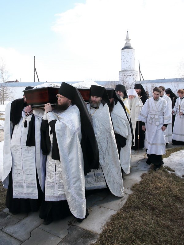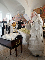 Почивший игумен Игнатий был погребён за алтарём Феодоровского храма, где до закрытия монастыря располагалось братское кладбище. Митрополит Ювеналий совершил на могиле литию и возложил к подножию креста корзину белых роз.