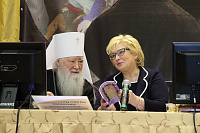 В своем докладе митрополит Ювеналий, в частности, сказал: «Мне очень приятно, что наша сегодняшняя встреча происходит в Зарайске. На это есть свои причины. В этом городе был дан старт моей церковной юности. В 1965 году, когда я стал архиереем, я носит титул епископа Зарайского. И хотя мое служение проходило в Москве, в Отделе внешних церковных сношений, я стремился в праздники быть в Зарайске, чтобы совершить службу в Благовещенской церкви — единственном открытом в то время в Зарайском крае храме… Наша встреча является следствием той многолетней и кропотливой работы, которая уже второе десятилетие осуществляется совместно Московской епархией и Министерством образования Московской области. Мы рады сотрудничеству духовенства и учительства на ниве воспитания подрастающего поколения, которое строится на традиционных духовных ценностях, истории и культуры нашего народа».