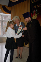 В завершение, Е. Н. Толмачева вручила отцу Александру благодарственное письмо Управления образования Чеховского района в знак плодотворного сотрудничества с Чеховским благоичнием.