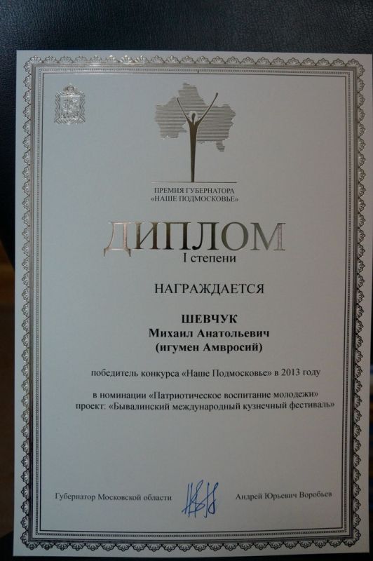 20 декабря в здании Правительства Московской области состоялось награждение победителей конкурса «Наше Подмосковье», среди которых был и настоятель Никитского храма д. Бывалино
