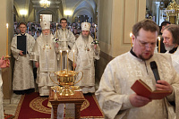 19 января, в праздник Святого Крещения Господня, в Успенском соборе Новодевичьей обители митрополит Ювеналий в сослужении архиепископа Можайского Григория и священнослужителей монастыря совершил Божественную литургию святителя Василия Великого и чин Великого освящения воды.