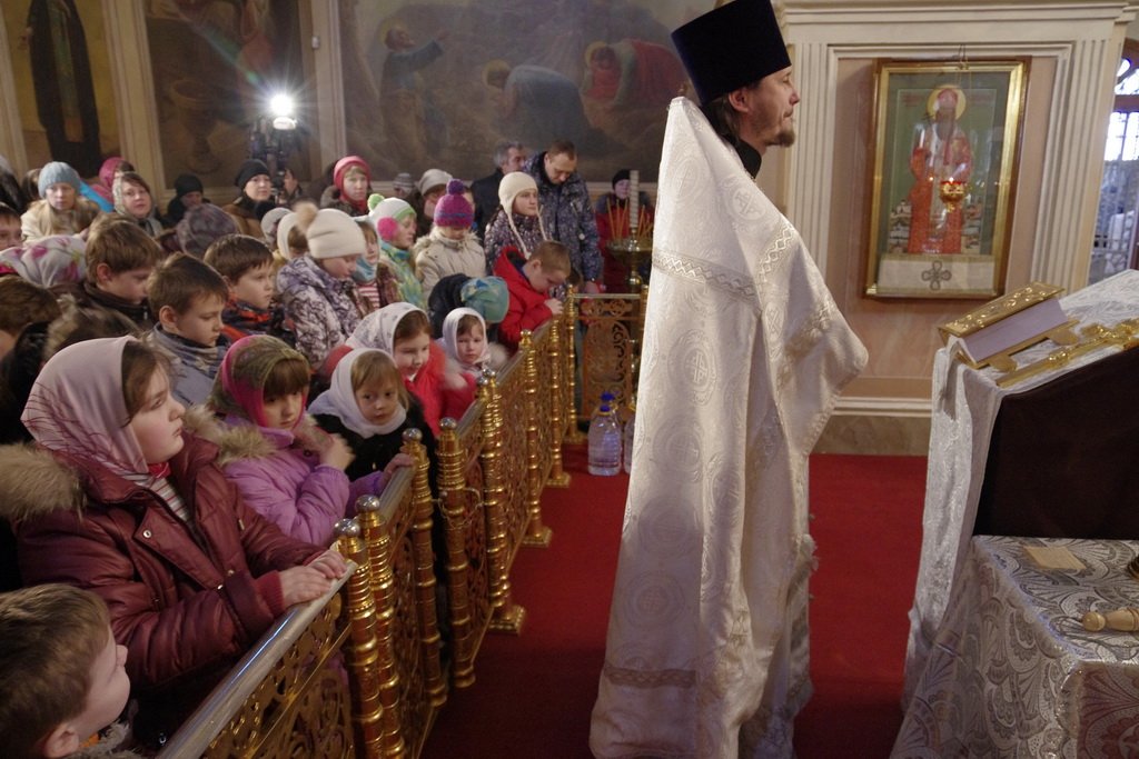 Управление образования администрации Дмитровского муниципального района и Дмитровское благочиние 18 января провели совместные мероприятия, посвященные Крещению Господню. Уже несколько лет подряд в Успенском кафедральном соборе для учащихся дмитровских школ чин освящения воды совершает благочинный Дмитровского церковного округа протоиерей Афанасий Чорногуз. В храме собрались в основном учащиеся младших классов, где преподаются основы православной культуры. Ребята пришли вместе с учителями и родителями.