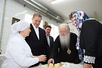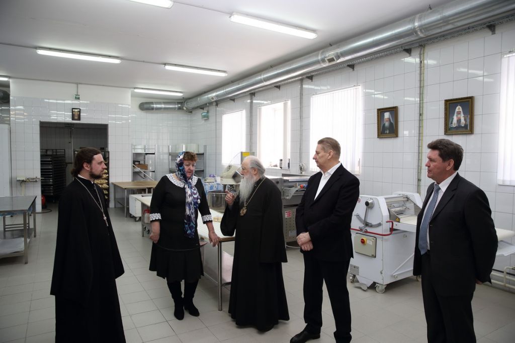 После трапезы владыка с гостями посетил просфорный цех, где пообщался с сотрудниками предприятия.