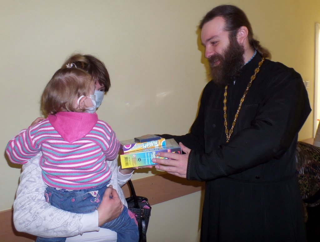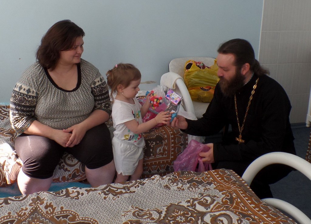 Сестры группы милосердия во главе с настоятелем Сретенского храма священником Павлом Мурзичем посетили педиатрическое отделение и передали детям подарки от Сретенского храма, поздравив с праздником Светлого Христова Воскресения.