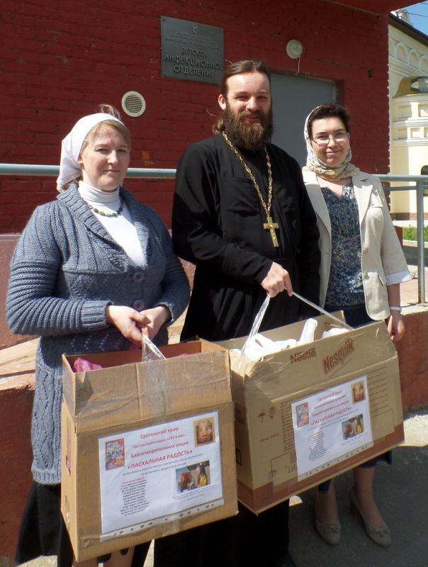 Группа милосердия Сретенского храма г. Дмитрова завершила II пасхальную благотворительную акцию «Пасхальная радость». Прихожане собрали более 40 наборов для детской Дмитровской больницы, коробки для Новосиньковской больницы, где долгое время находятся