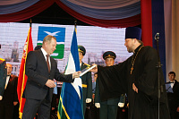 Благочинный Чеховского церковного округа, священник Александр Сербский передал теплые слова приветствия и благопожелания от митрополита Ювеналия, а так же поздравления от имени духовенства Чеховского церковного округа, настоятеля и братии Вознесенской Давидовой пустыни. В благословение на усердные труды отец Александр вручил Сергею Васильевичу образ великомученика Георгия Победоносца, а так же книгу о преподобном Сергии Радонежском «Небесный человек».
