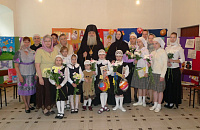 Этот день совпал с окончанием учебного года. Епископ Роман посетил праздник последнего звонка для девочек из приемной семьи при Александро-Невском женском монастыре и учащихся Квашенковской средней школы.